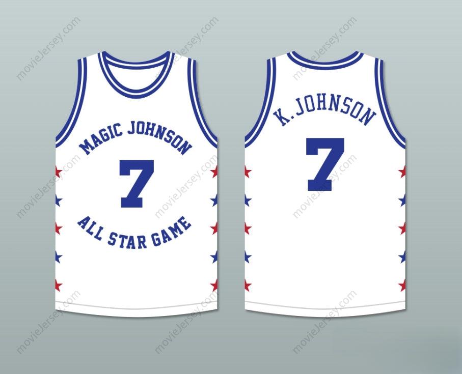 CUSTOM ANY Name Number KEVIN JOHNSON 7 MAGIC JOHNSON ALL STAR GAME WHITE BASKETBALL JERSEY 1989 MIDSUMMER NIGHT'S MAGIC CHARITY EVENT Top Stitched S-6XL