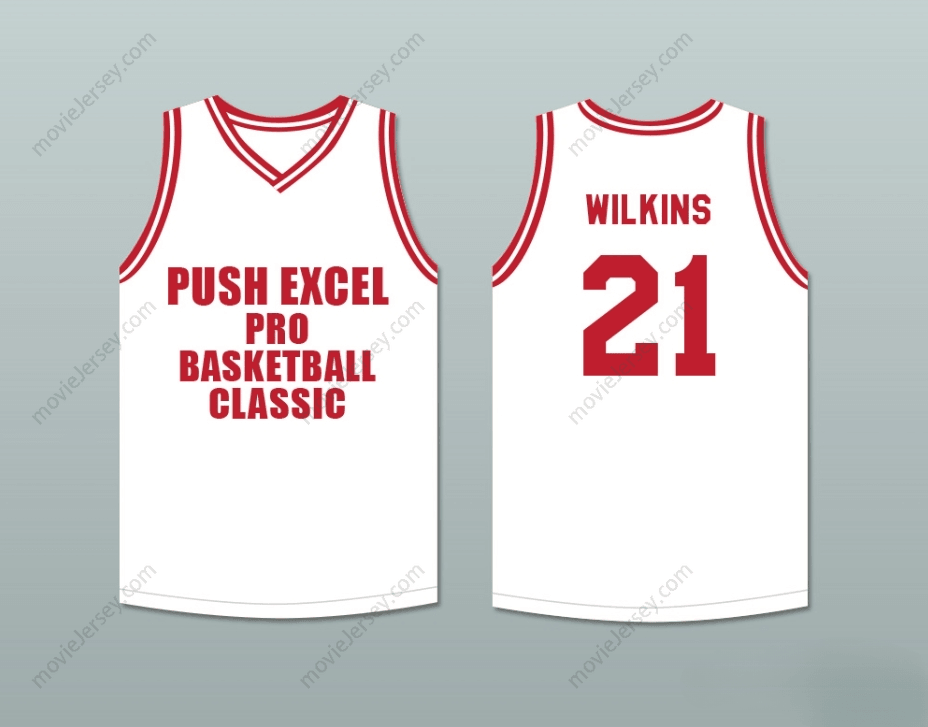 CUSTOM ANY Name Number DOMINIQUE WILKINS 21 PUSH EXCEL PRO BASKETBALL CLASSIC WHITE BASKETBALL JERSEY 1988 CHARITY EVENT Top Stitched S-6XL