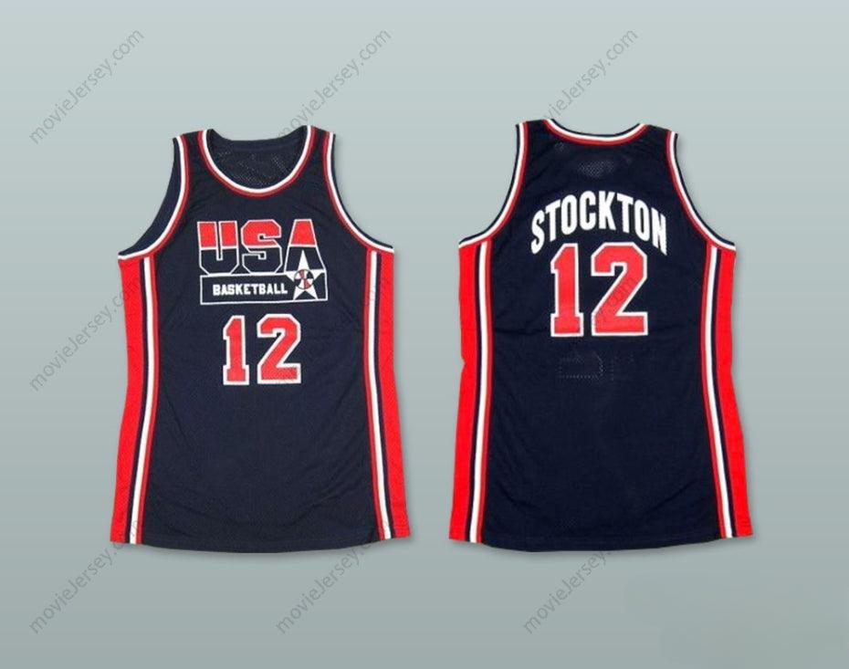 CUSTOM ANY Name Number 1992 JOHN STOCKTON 12 USA AWAY BASKETBALL JERSEY Top Stitched S-6XL